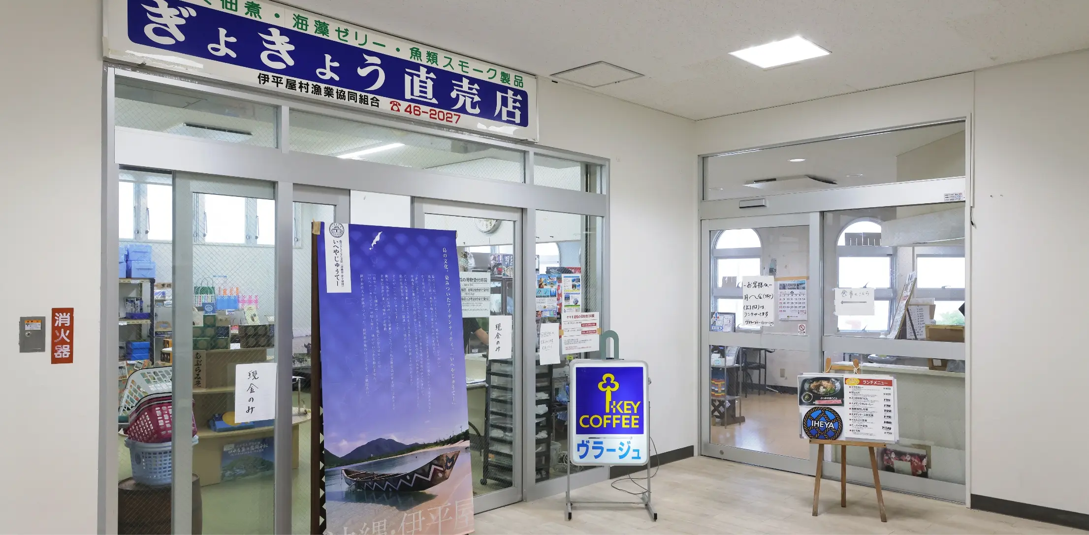 沖縄本島から船で90分ほどで到着する伊平屋村。港のターミナルに併設された漁協直営の販売所の隣には、地元の海産物をちょっとユニークにアレンジした遊び心あふれるメニューが魅力の飲食店が営業中。