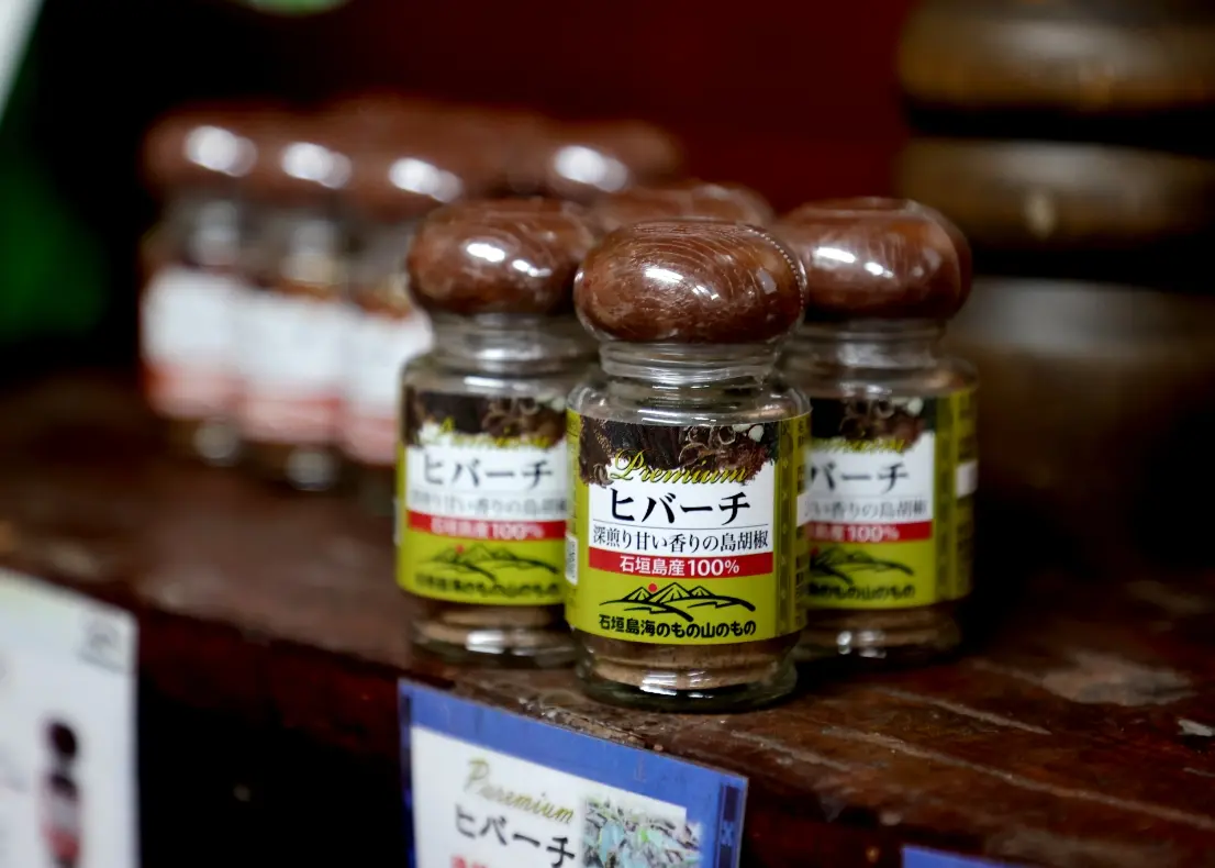 こうした郷土料理の“影の主役”ともいえる存在が、島の胡椒「ピパーツ」。ブラックペッパーよりも爽やかで、ハーブのような香りがふわりと広がるそのスパイスは、そばや八重山そば、じゅーしーかまぼこなどの味を一気に引き締めてくれます。