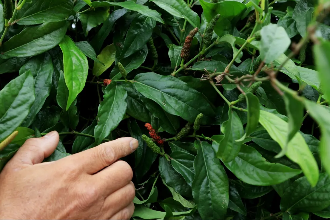 地元農家の方によるとピパーツは、コンクリートブロックに這わせて育てるユニークな栽培方法があり、昼間に昼夜の寒暖差によってピパーツがぐんぐん成長し、実も手の届く高さに育つため、収穫まで効率的なのだとか。