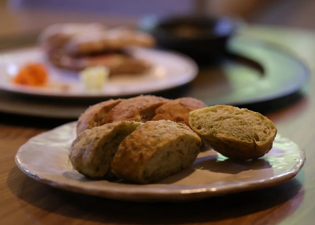 想要品嚐到使用這種阿薩(海藻)製作的麵包,可以前往位於北中城村外國人住宅區的人氣咖啡館「普勞曼斯午餐麵包坊」(Ploughmans Lunch Bakery)。在這裡,可以品嚐到揉入日本國產海藻※製作的「海藻與海鹽魯茲提克麵包」(法文意為鄉村風格的硬式麵包)。帶著恰到好處鹹味的麵包生地中,輕輕散發出阿薩(海藻)特有的香氣。搭配咖啡或其他飲料一同享用,更能襯托出它的風味。
