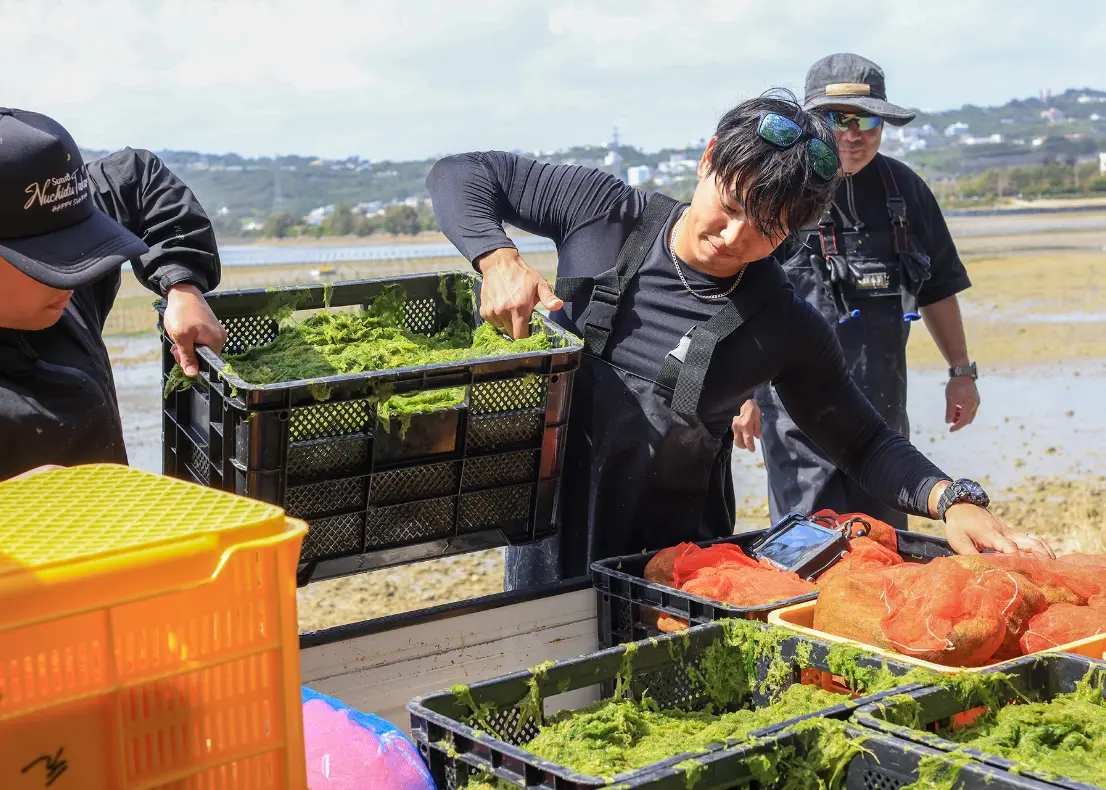 阿薩(海藻)的採集通常在每年三月左右進行。當平靜的海面上鋪展開鮮明的綠色時,這樣的季節景象,也成為宣告沖繩春天到來的風景之一。